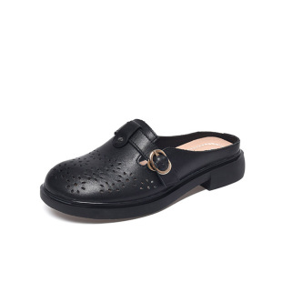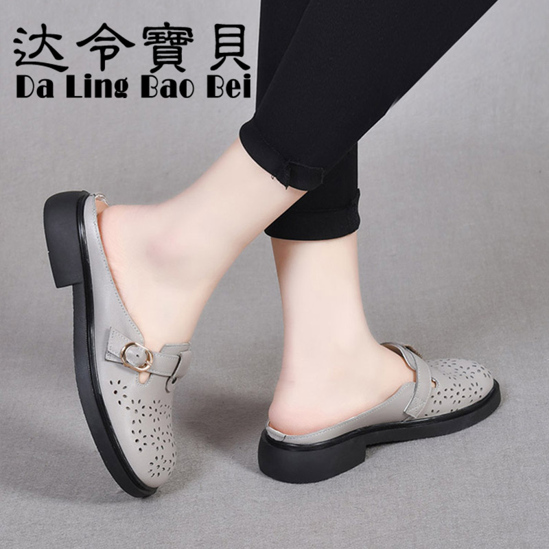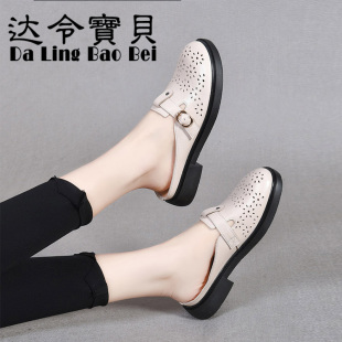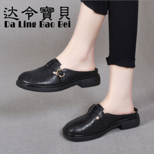 镂空 包头凉拖鞋 夏外穿牛皮低跟特色女2025新款 软底半托真皮女鞋