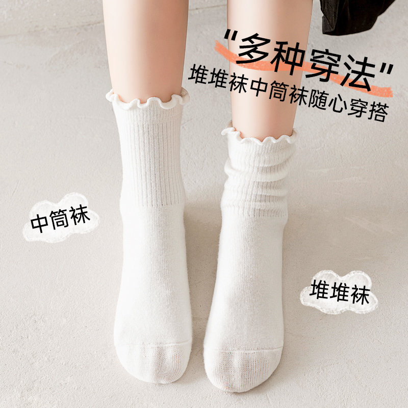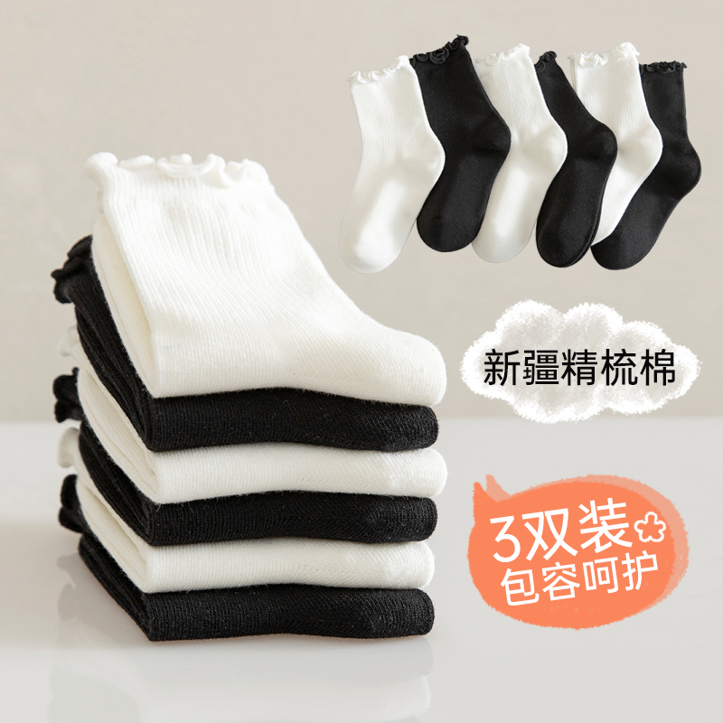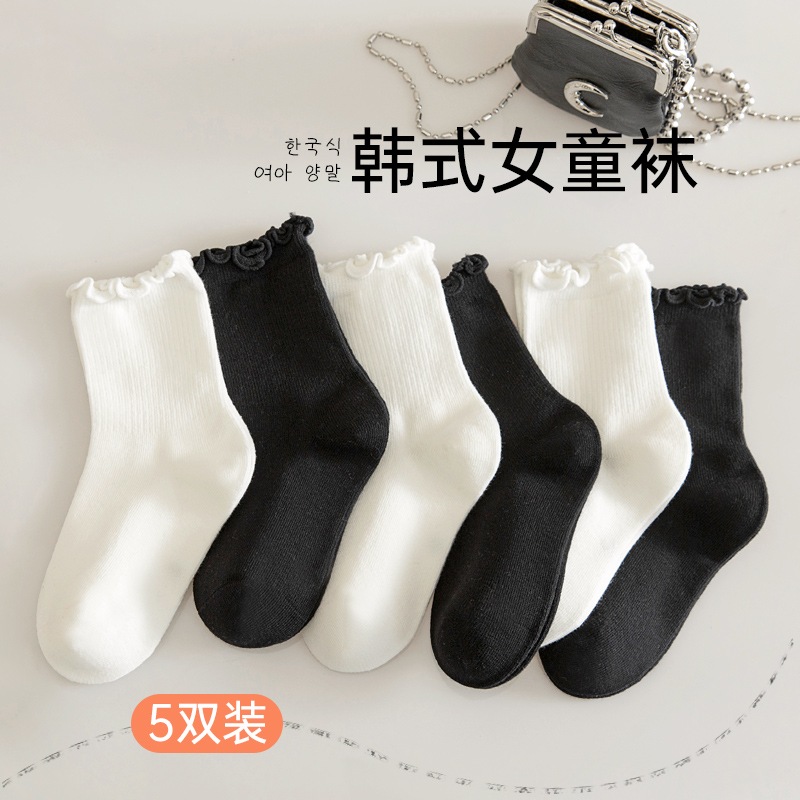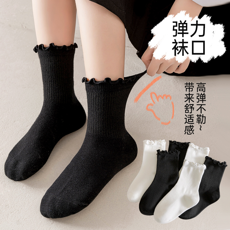 女童袜子春秋纯棉儿童洛丽塔小女孩白色公主花边袜秋季 宝宝中筒袜