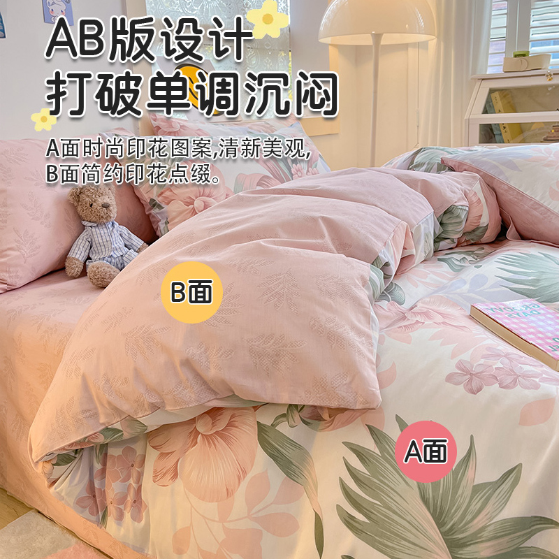 无印良品全棉床单学生宿舍纯棉卡通儿童被套秋冬三件套床上用品