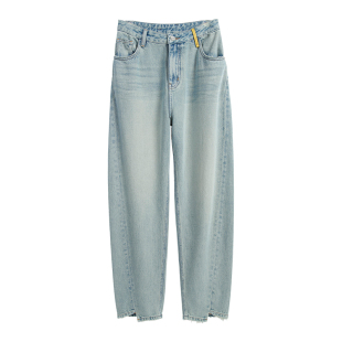 阔腿宽松弯刀裤 做旧水洗牛仔裤 L2C5NK119 美式 indicia标记2025新款