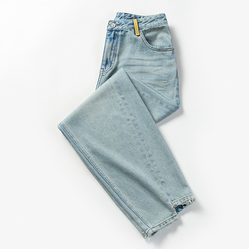 子 女高腰2025春秋深蓝色丹宁直筒裤 Jessica郑秀妍同款 阔腿牛仔裤