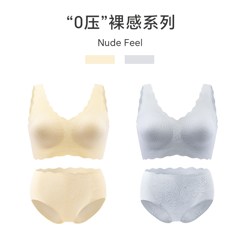 本周小浮云7A抗菌蕾丝无痕裸感悬浮杯不跑杯背心式 文胸内衣套装