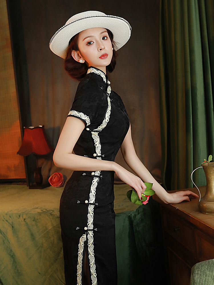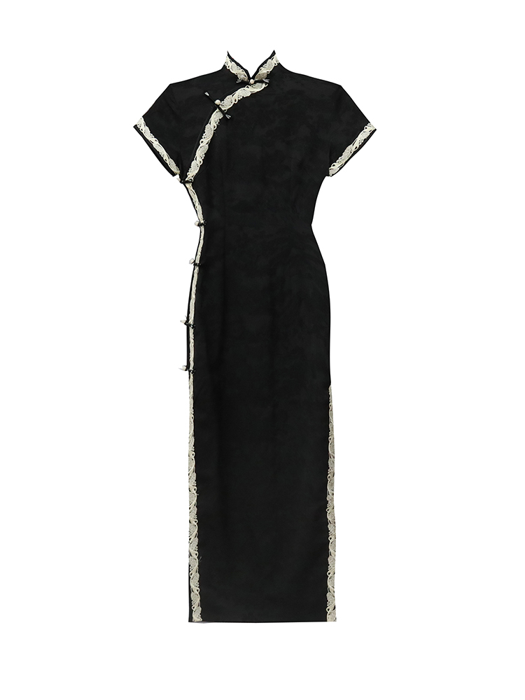 黑色刺绣旗袍2025春夏新款 走秀连衣裙 女复古民国风日常可穿新中式