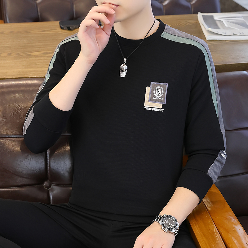 卫衣2025新款 长袖 拼接绣花青少年加厚上衣服潮加绒保暖 男士 春秋季