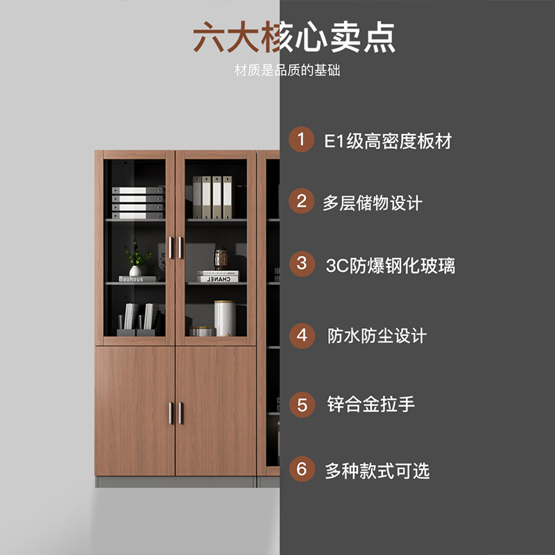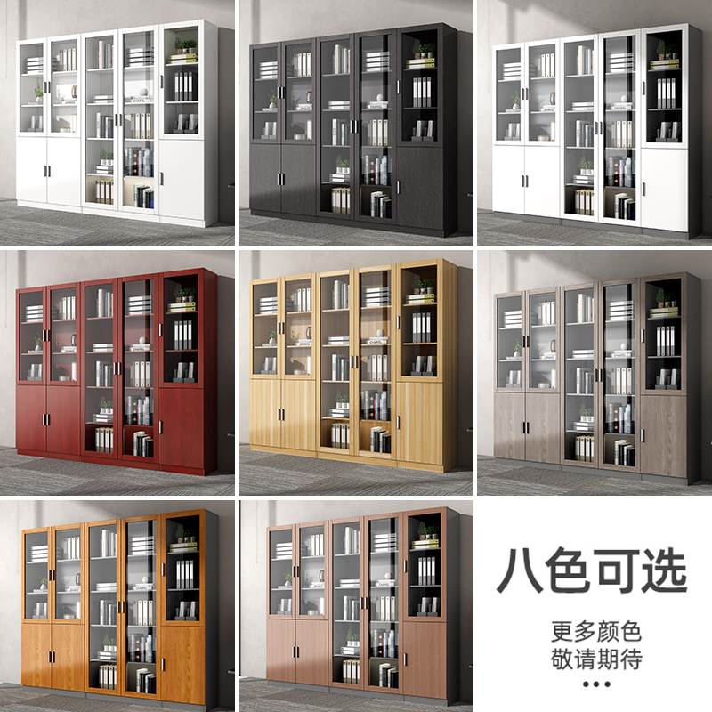 文件柜木质办公柜档案资料柜玻璃门带锁储物柜落地板式 书柜置物柜