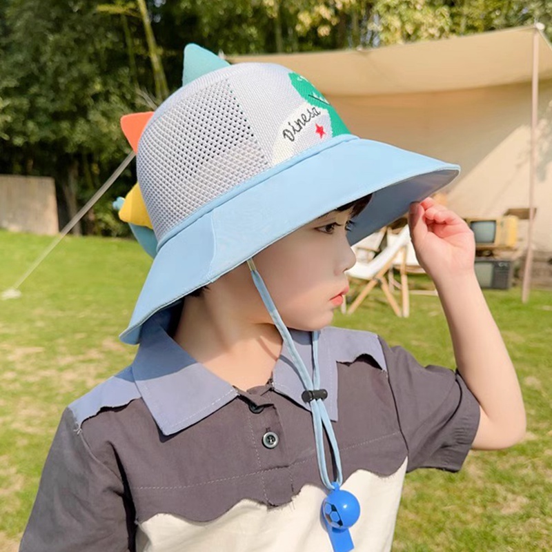 儿童帽子夏季 透气防晒帽大檐男童遮阳帽口哨小孩恐龙渔夫帽太阳帽
