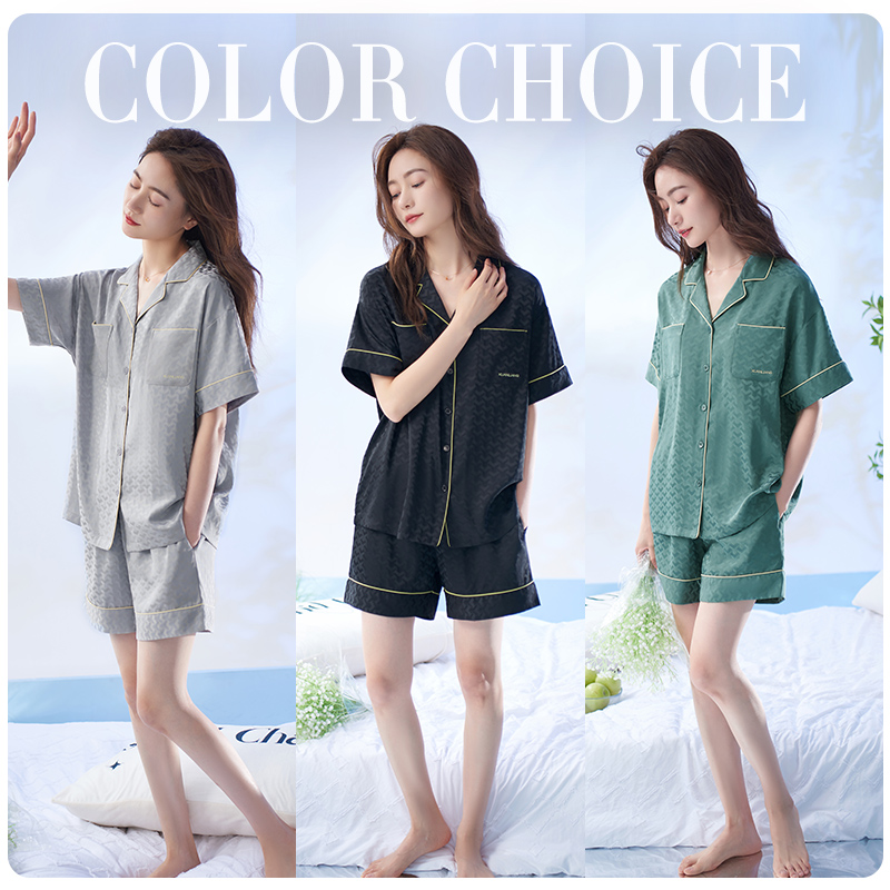仿真丝绸高级感黑色家居服套装 轩靓睡衣女士夏季 短裤 冰丝短袖 薄款