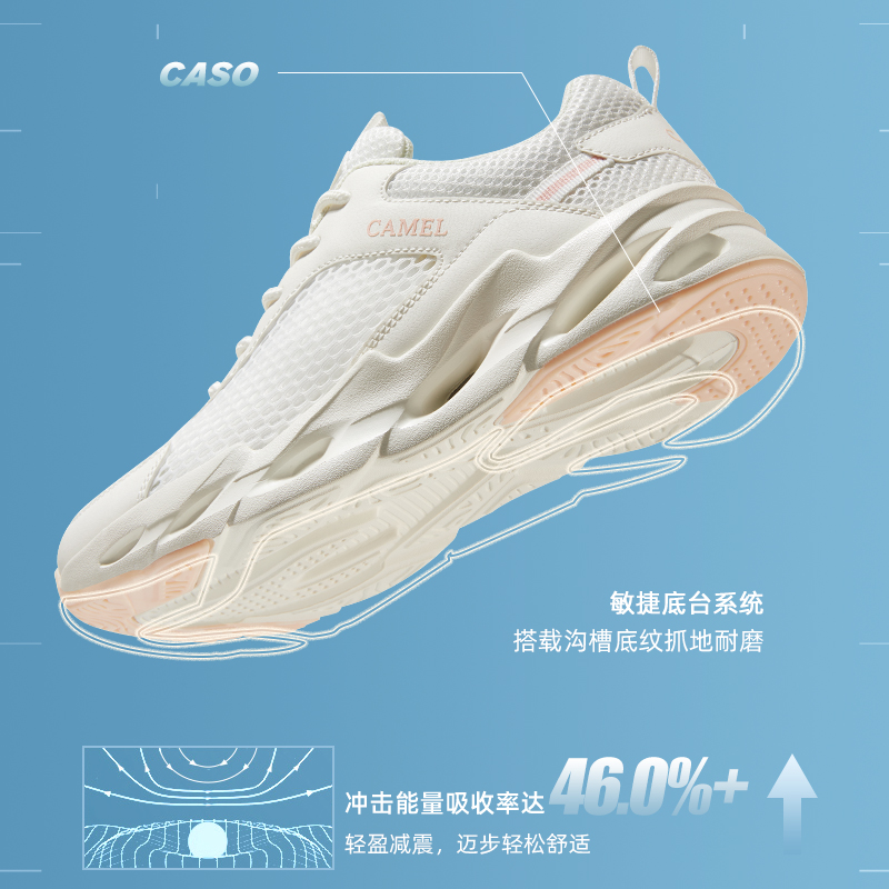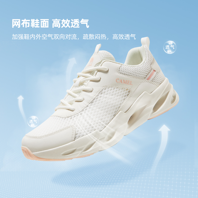防滑轻便软底男鞋 骆驼户外休闲鞋 网面透气运动鞋 新款 女2025夏季
