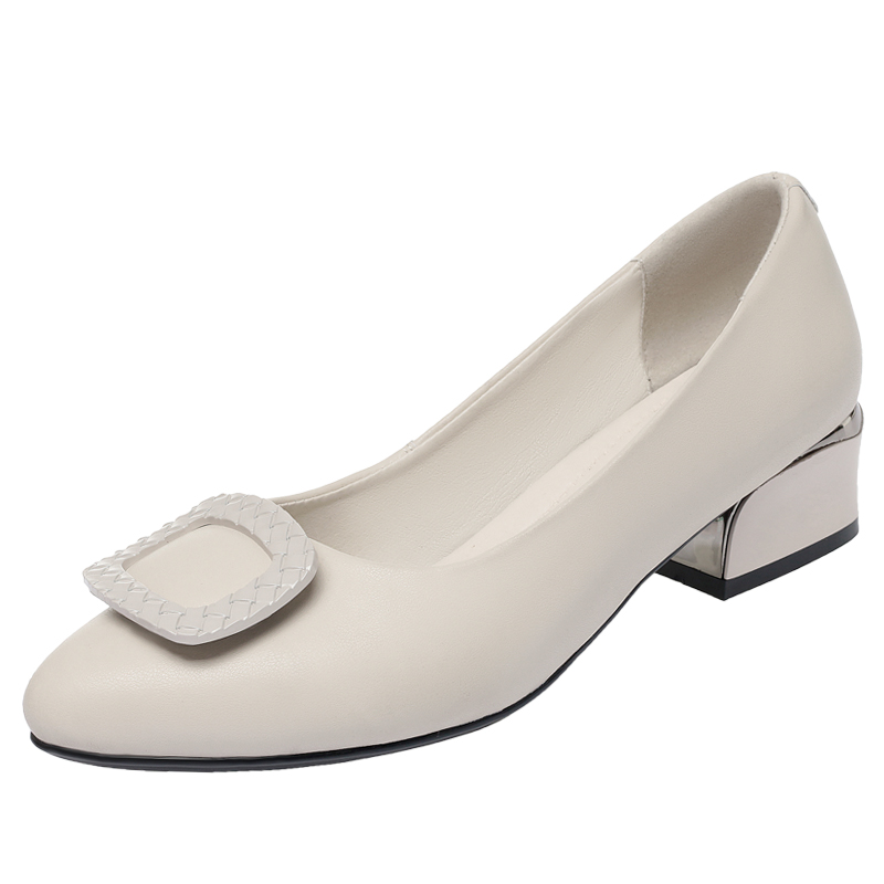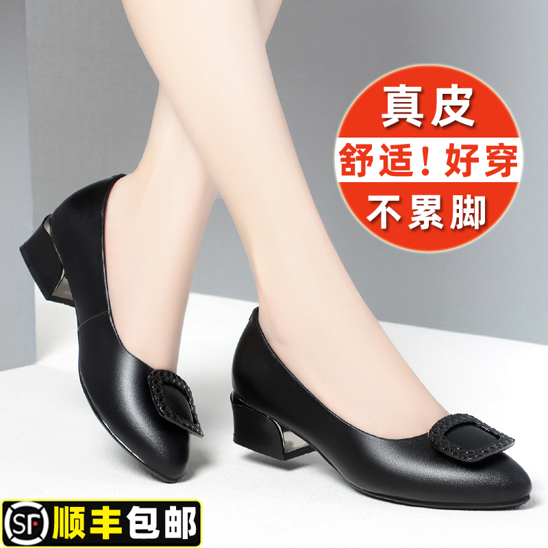 高跟气质小皮鞋 真皮妈妈鞋 舒适女士春秋款 软底中年女鞋 子粗跟单鞋