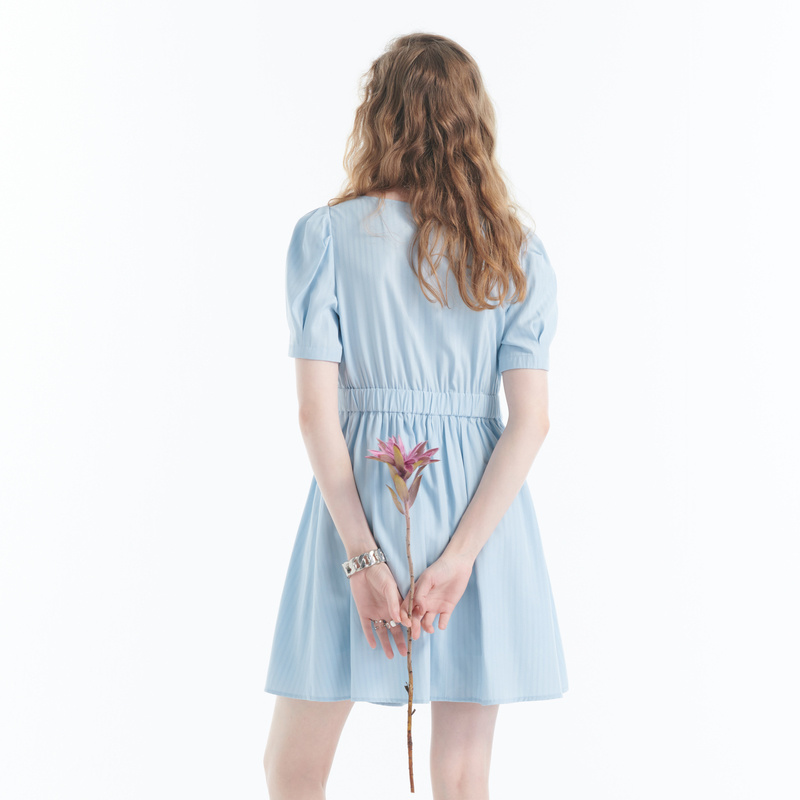 茶歇裙MEBV4121 MSLAN春夏气质浪漫短裙收腰连衣裙短袖 方领口