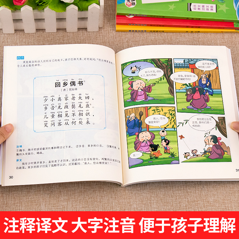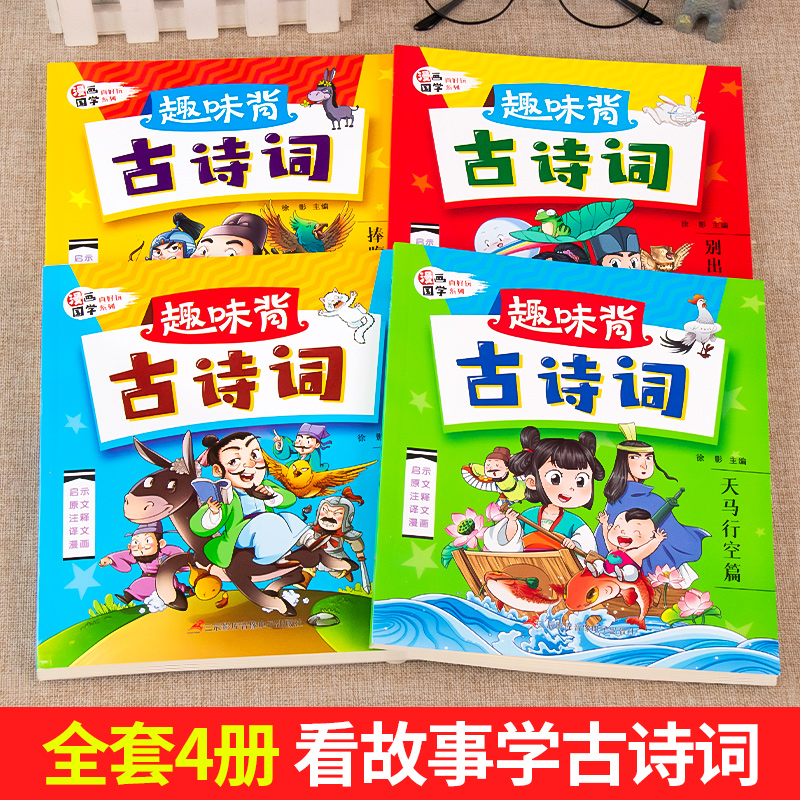 儿童漫画书小学生必背古诗词 趣味背古诗词 爆笑漫画幽默笑话大全 一二三年级课外阅读书籍小学生版 课外书 注释译文注音版 全4册