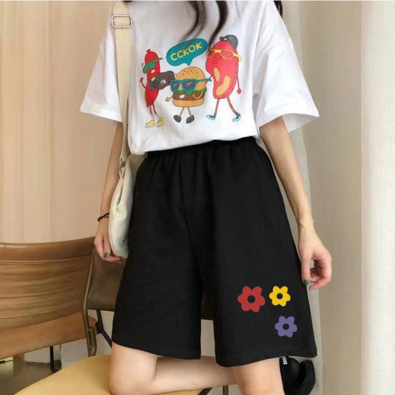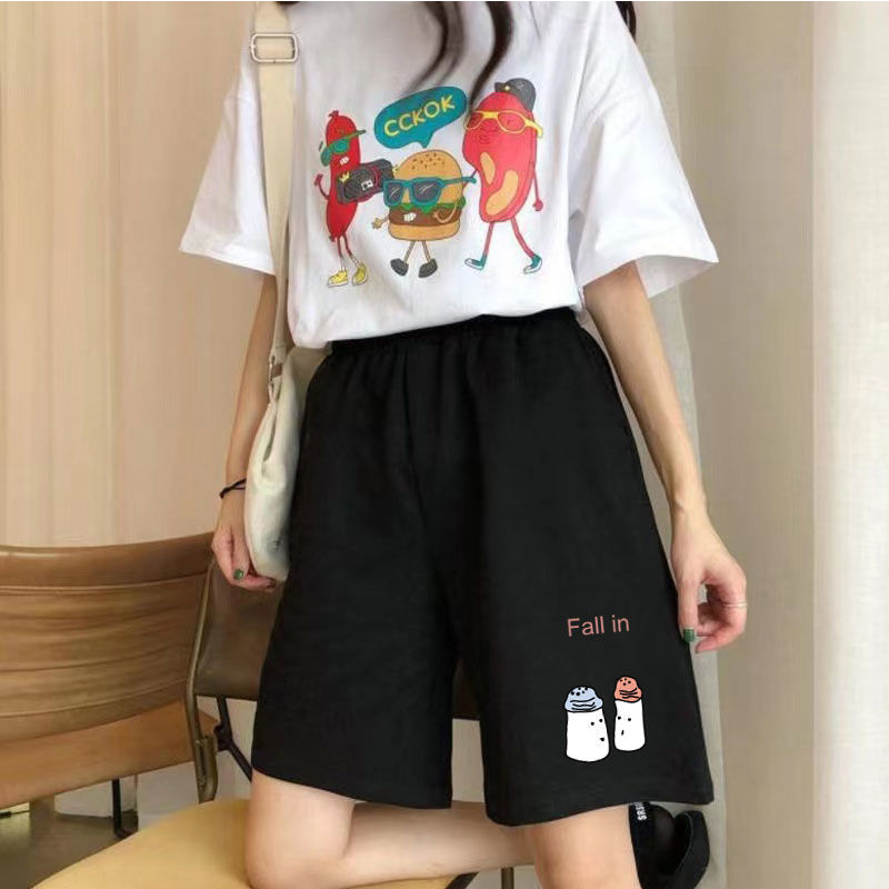 宽松休闲直筒港味潮ins中裤 2024新款 薄款 女夏季 显瘦五分运动短裤