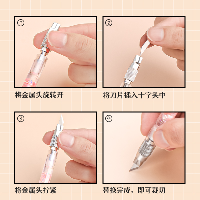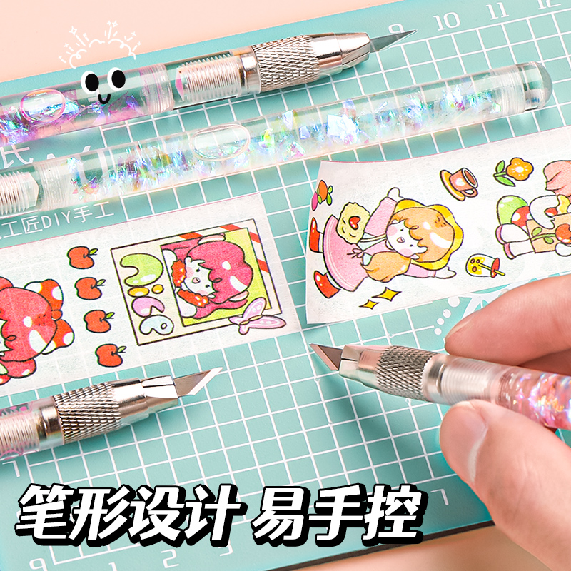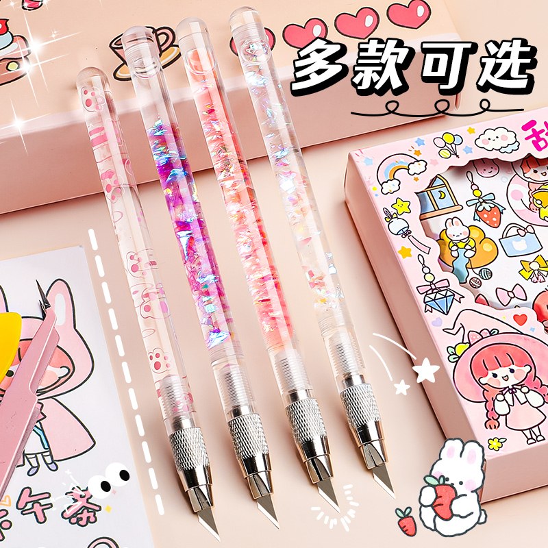 流沙手帐刻刀笔刀手账专用可爱刻刀笔儿童小学生高颜值笔形美工刀手工刮刀手杖本贴纸切割刀拆快递开箱小刀子