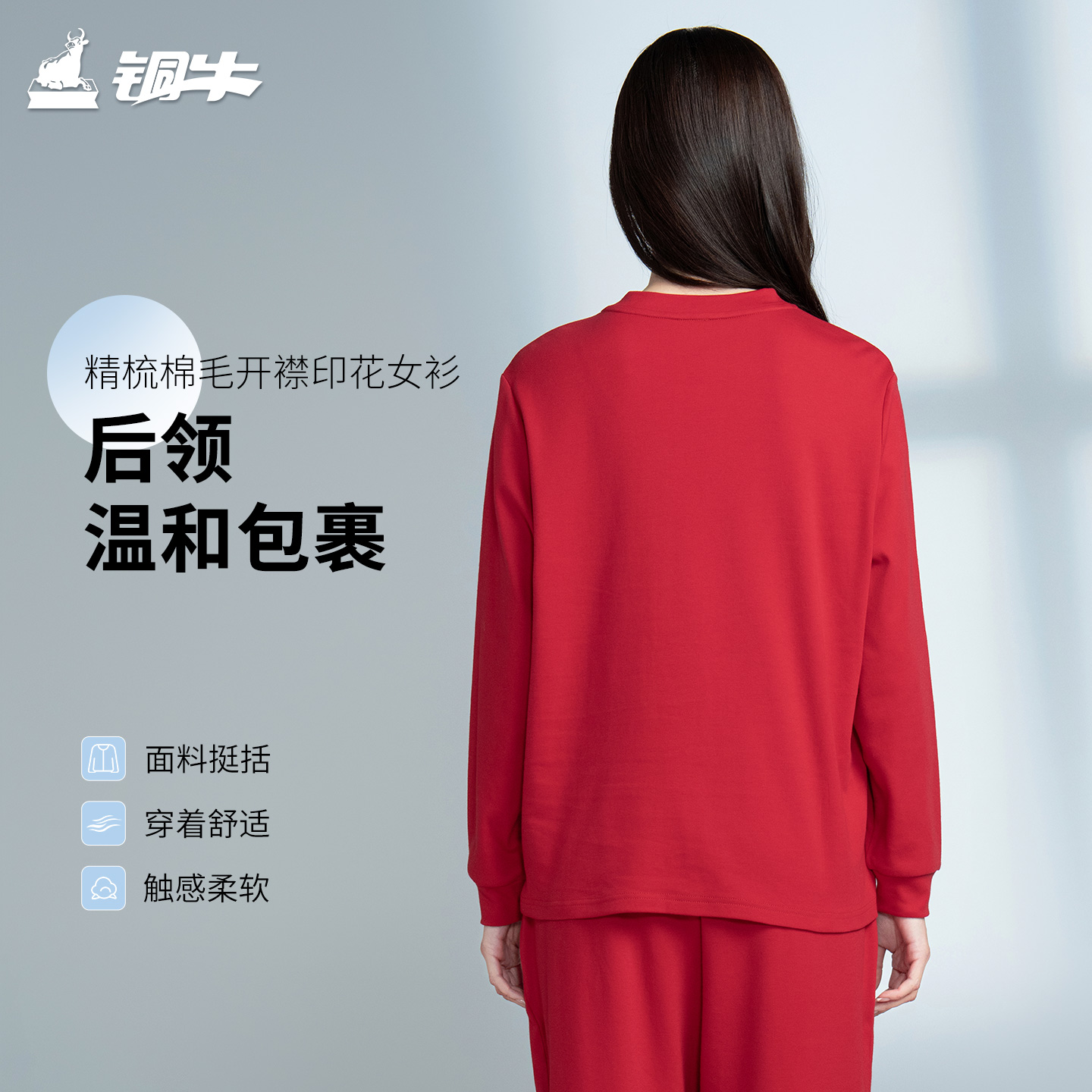开衫 睡衣家居上装 女VS234 秋冬新款 铜牛精梳棉毛开襟印花家居女衫