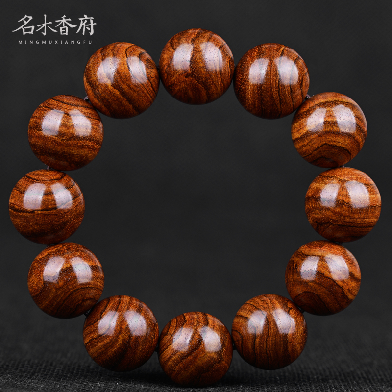 名木香府海南黄花梨老料山水纹虎皮纹手串手链佛珠海黄男女款 木珠