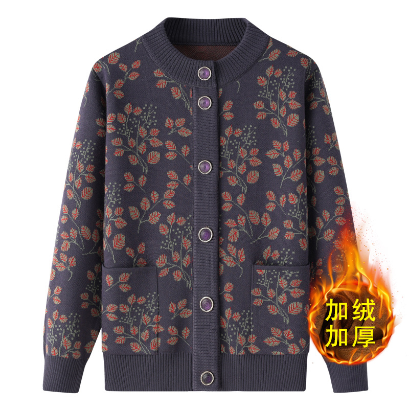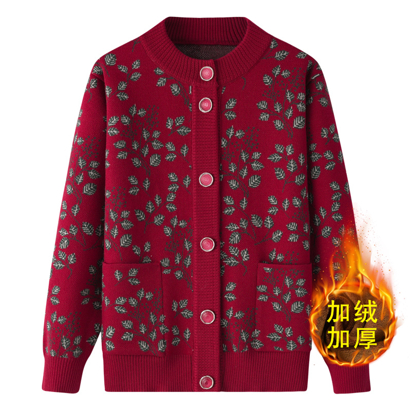 中老年人秋冬外套奶奶毛衣妈妈装 保暖老太太衣服 加绒加厚针织开衫