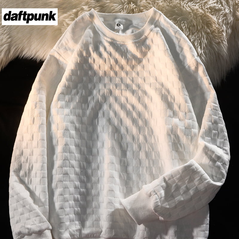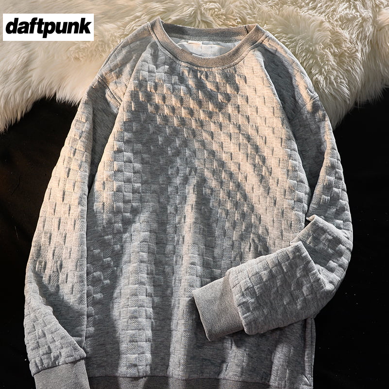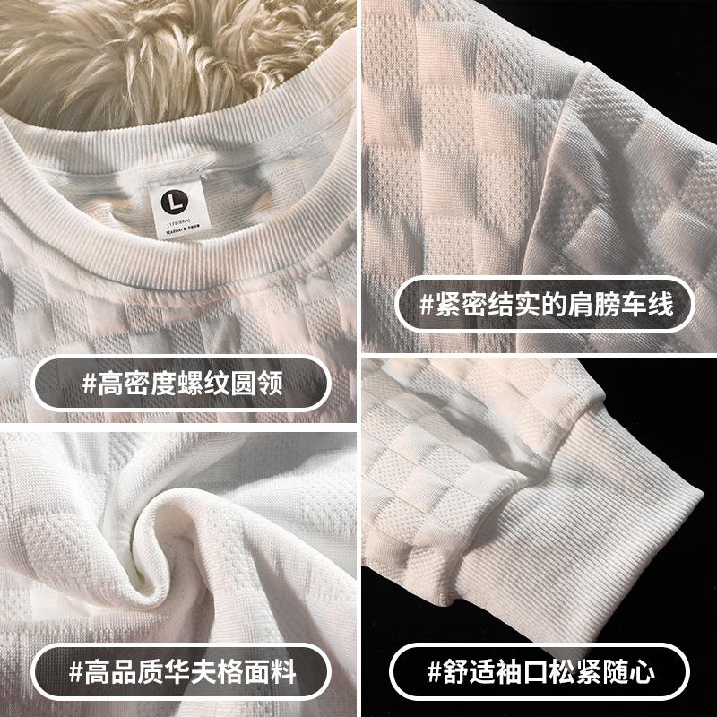 秋季 T恤男女ins宽松潮牌圆领卫衣潮流百搭港风简约体恤 华夫格长袖