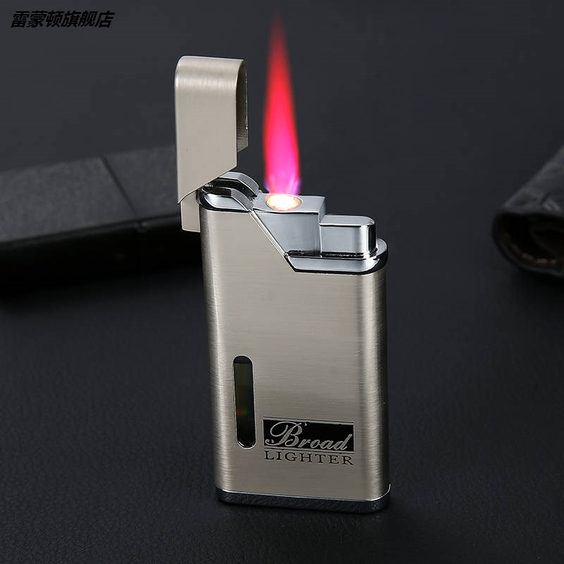 充气防风打火机可视气体超薄创意个性 红火焰生日青年 定制金属男士