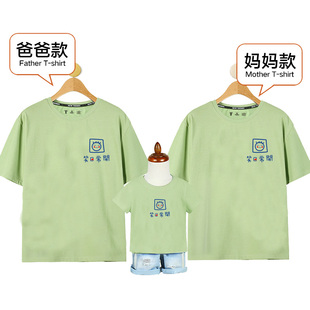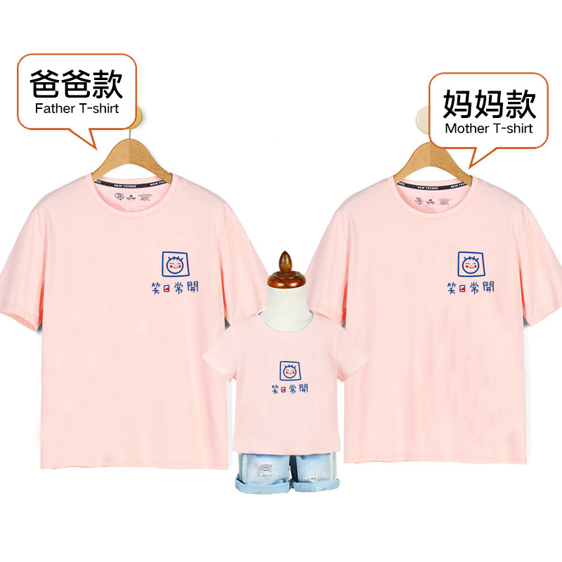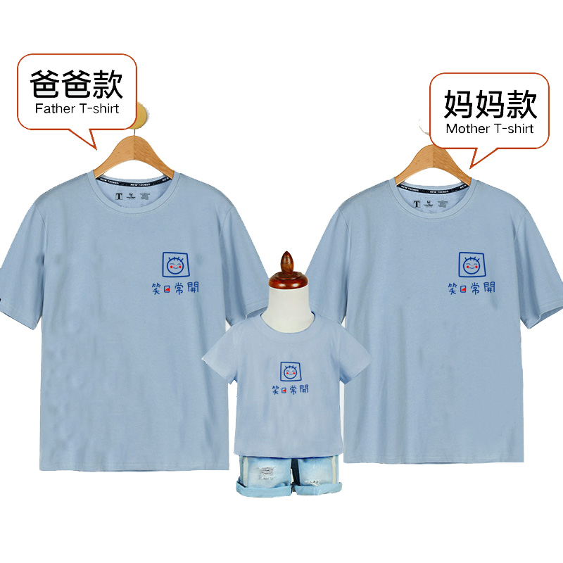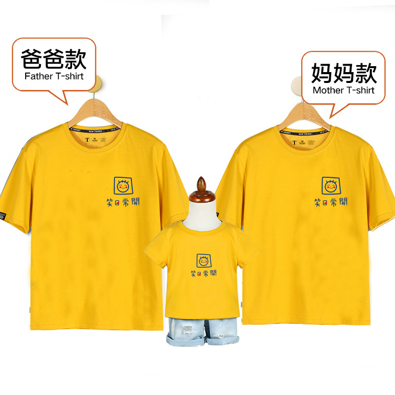 2025纯棉笑口常开文字短袖 一家三口简约母子装 T恤 夏款 国潮亲子装