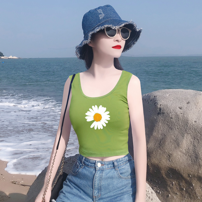 上衣 带胸垫遮副乳外穿显瘦打底无袖 棉吊带背心春夏季 内搭薄款