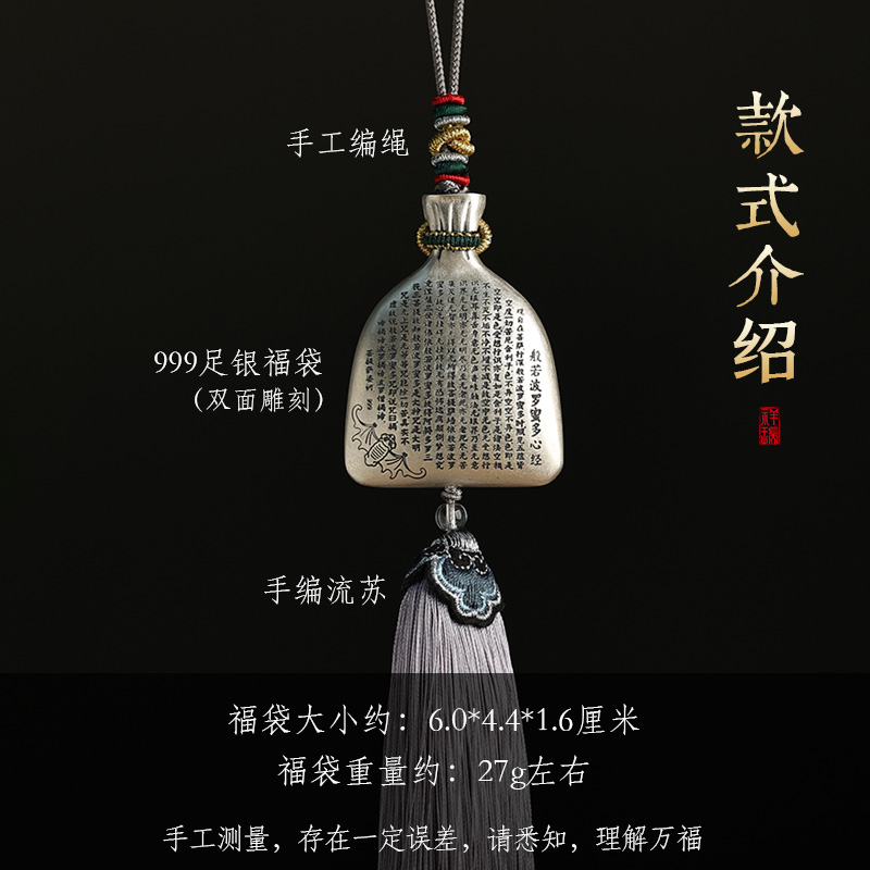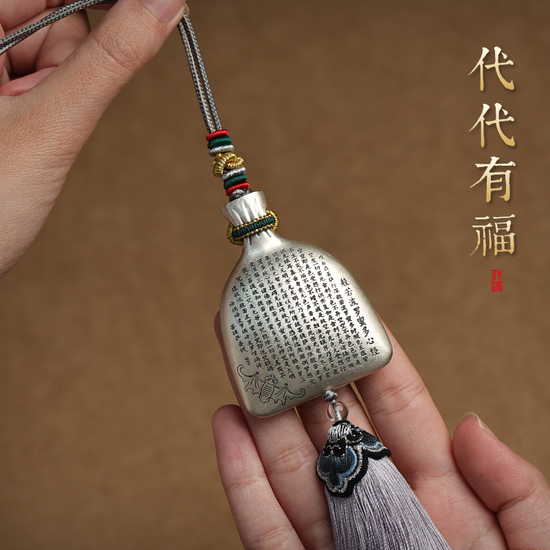 足银心经福袋汽车挂饰高档新款 礼物饰品平安后视镜车载内吊坠挂件