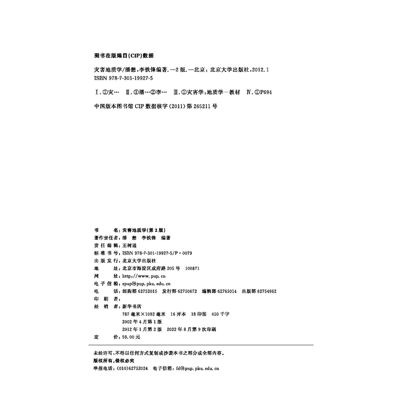 第二版 潘懋 李铁峰 正版 北京大学出版 灾害地质学 国家地质学基础科学研究和教学人才培养基地系列教材 社9787301199275 2022新书