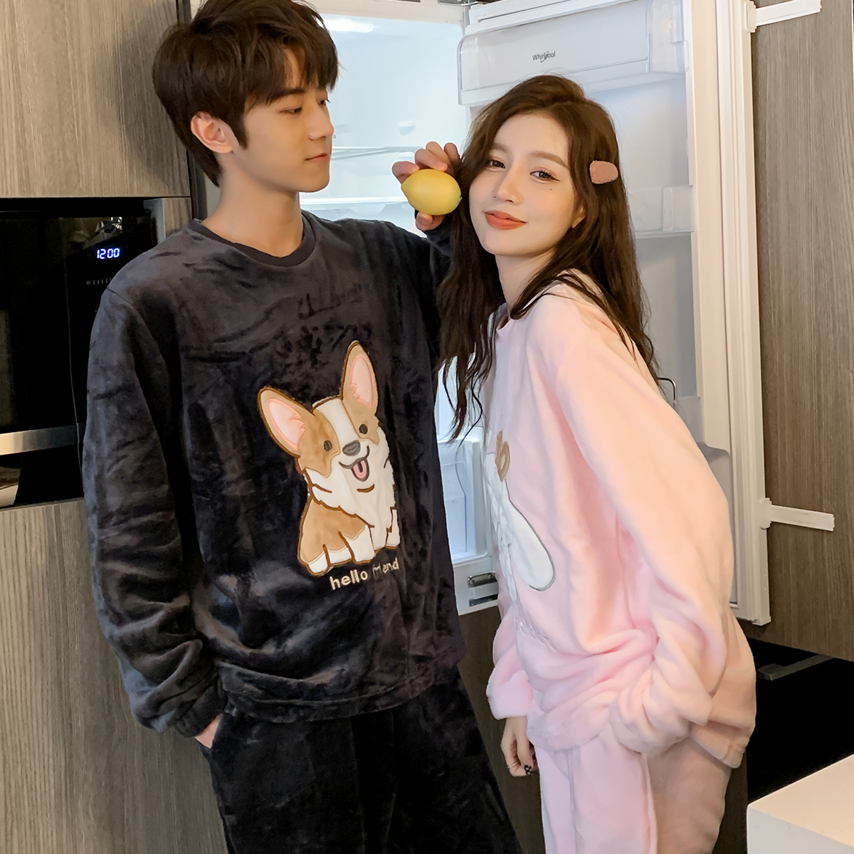 水星家纺暖绒男女家居服卡通萌趣情侣款 秋冬可外穿保暖睡衣套装