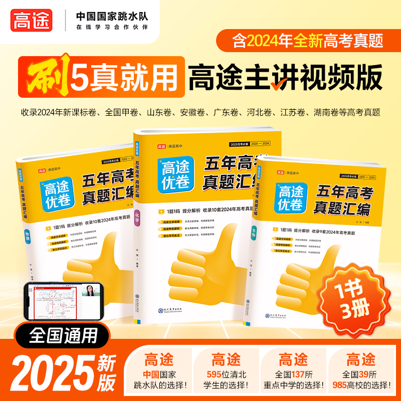 当当网 高途优卷五年高考真题汇编全国卷语文数学英语物理化学生物政治日语五年高考高中必刷题高途名师视频精讲 2025新版