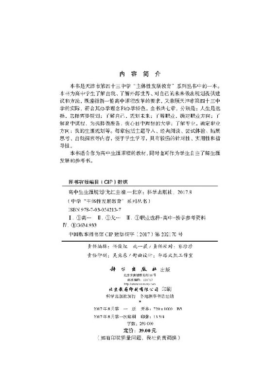 自我探索教学方法及理论拓展思考指导科学出版 高中生生涯规划 阅读 中学主体性发展教育系列丛书经典 社9787030542137 戈红主编
