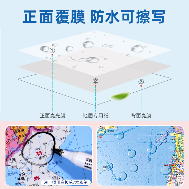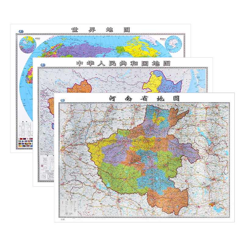 大尺寸106 河南省地图中国地图世界地图共3张 76cm覆膜防水行政区划交通线路二合一挂画贴图 2022