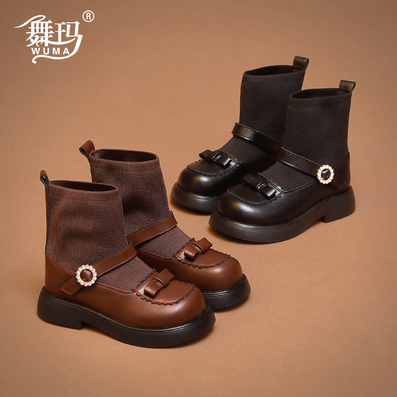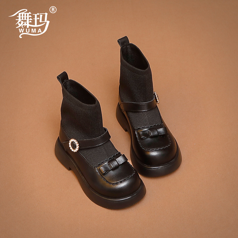 女童鞋 秋冬加绒短靴宝宝袜靴二棉马丁靴真皮单靴 儿童靴子2025新款