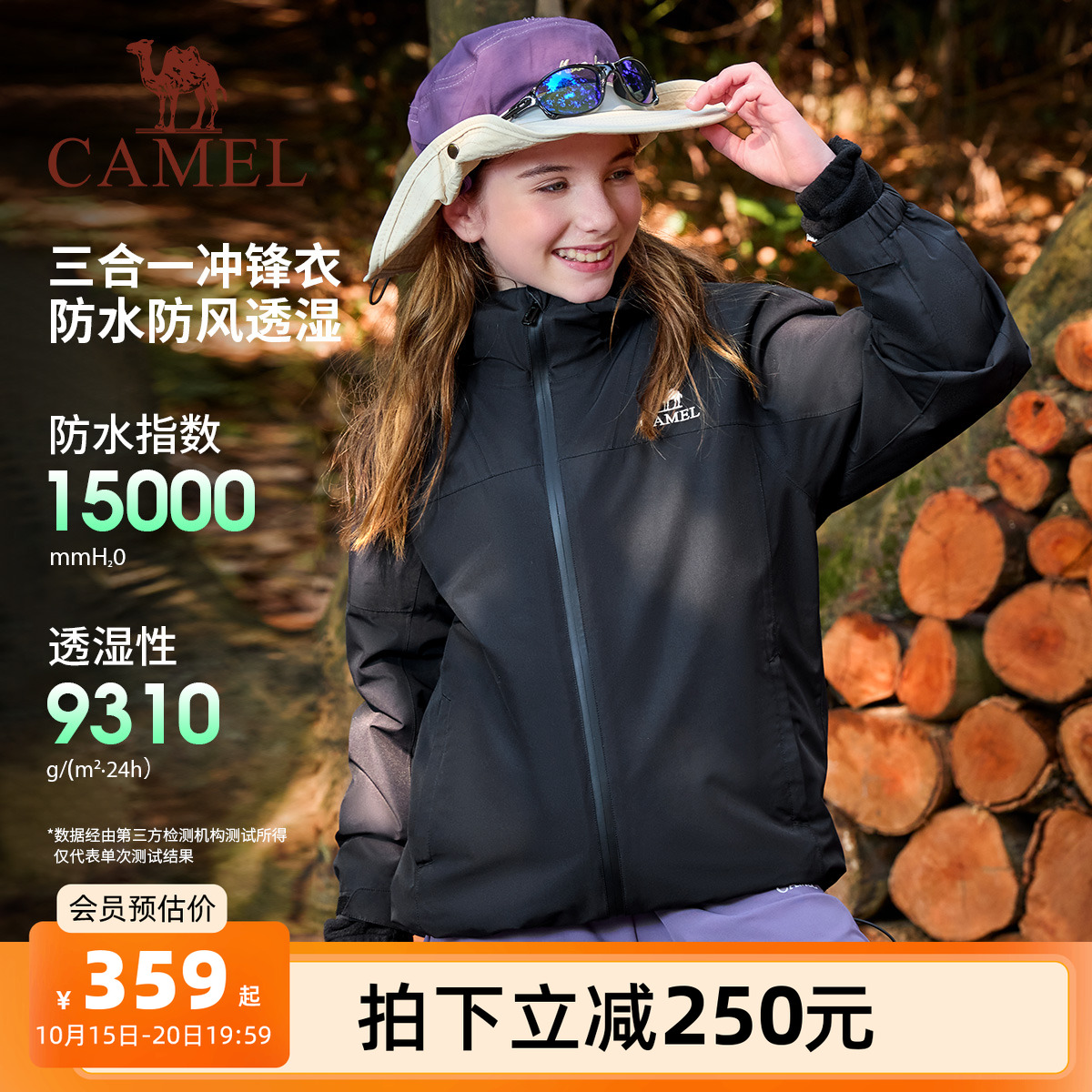 骆驼童装 儿童冲锋衣三合一户外保暖女童滑雪服加绒防水男大童外套