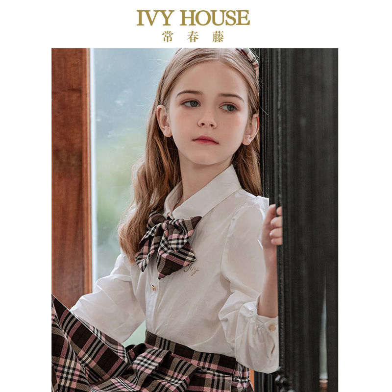 款 女童领饰秋季 学院风JK格子领花配饰洋气 HOUSE常春藤儿童装 IVY