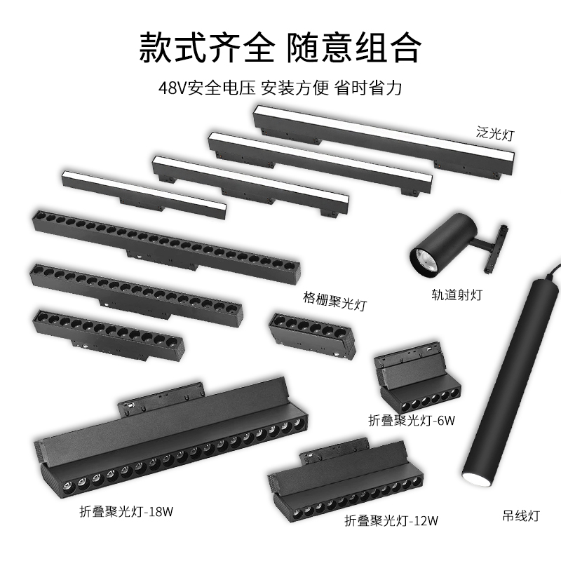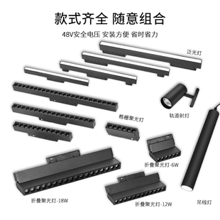 极窄无主客厅矮款 超薄预埋暗装 磁吸灯嵌入式 明装 led 磁吸轨道射灯