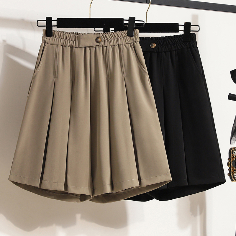 休闲a字高腰显瘦遮肉阔腿宽松胖mm五分裙裤 大码 女夏季 短裤 潮 西装