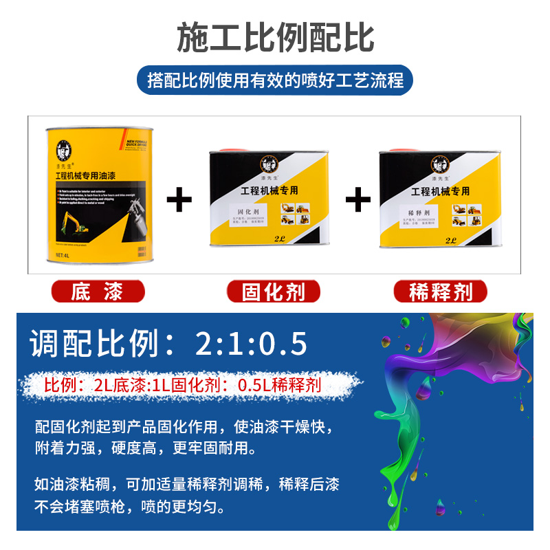 漆先生1L桶装 漆杭州叉车黑黄红色新能源叉车油漆工程机械翻新油漆