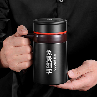 智能保温杯手柄办公杯水杯定制logo赠送聚会留念杯子礼品茶杯印字