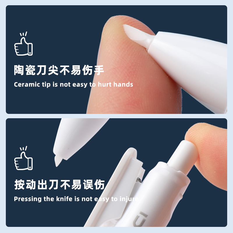 晨光优品按动陶瓷刻刀笔手账不伤手学生专用儿童可爱切割刀笔形手工安全刻纸刀小雕刻美术用美工刀拆快递小刀