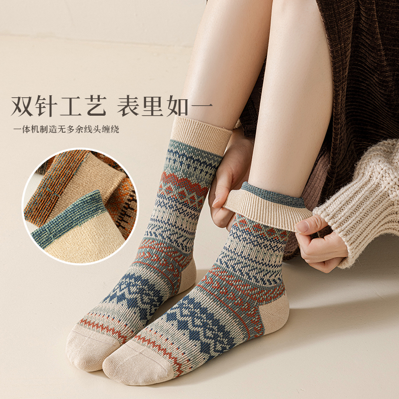 袜子女款 纯棉防臭中筒袜美拉德长筒袜女士加厚保暖堆堆长袜 春秋季