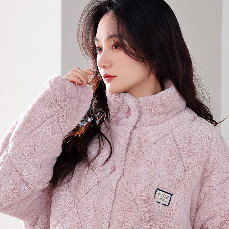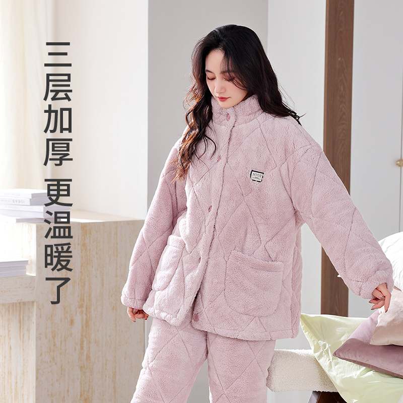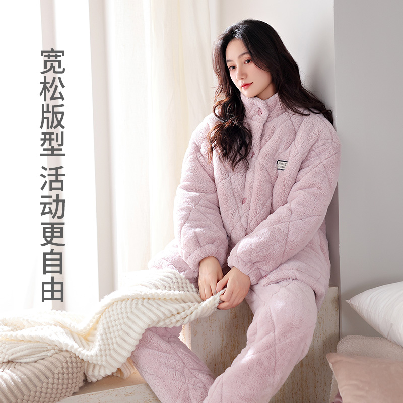 套装 海岛绒家居服春秋款 加绒加厚珊瑚绒保暖时尚 轩靓睡衣女秋冬季