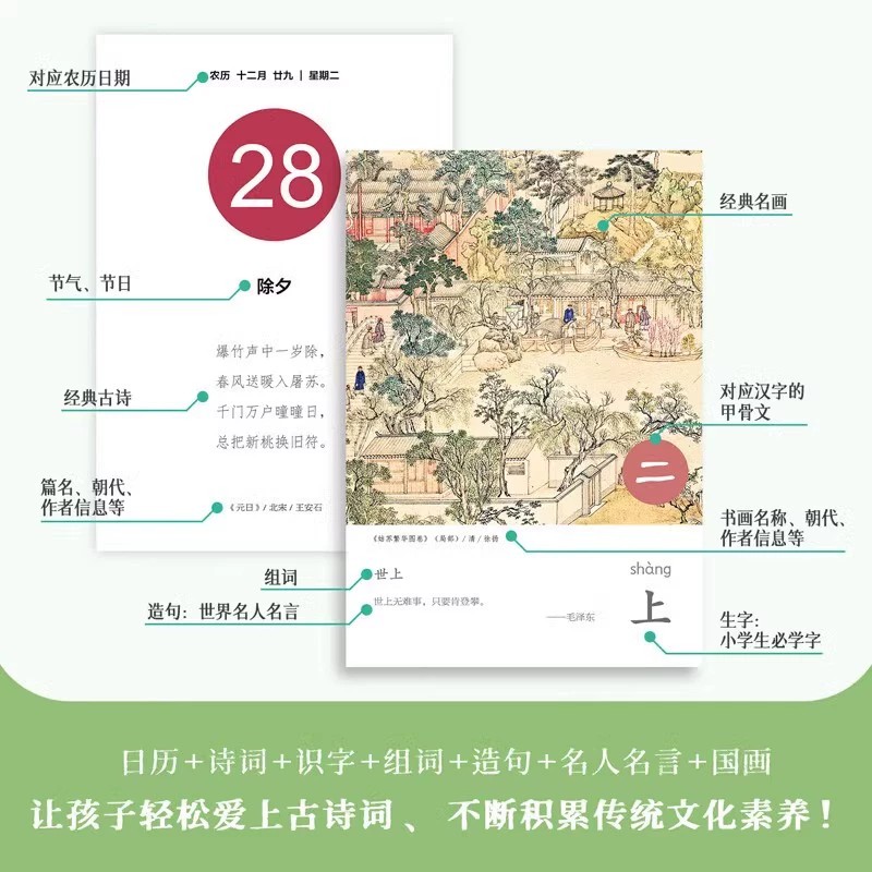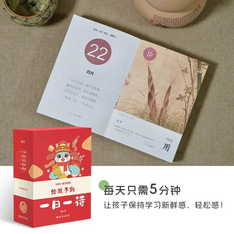 抖音同款 一日一诗2025年亲子日历创意365每天一首古诗词日历儿童诗词日历桌面台历中华国古诗词大全亲子读物2025年蛇年 给孩子
