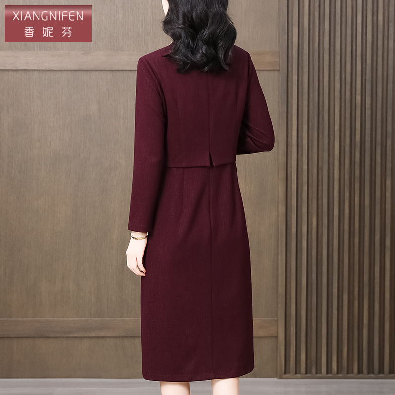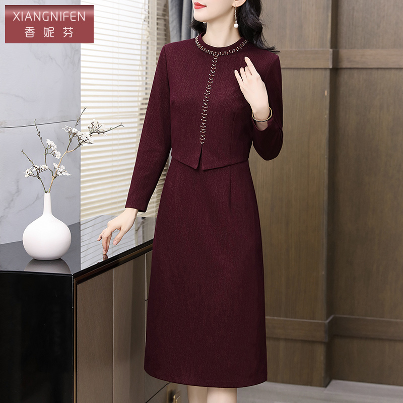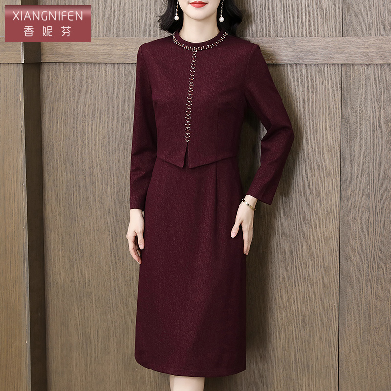 红色气质长袖 连衣裙2025新款 裙子 洋气妈妈端庄大气春装 香妮芬时尚