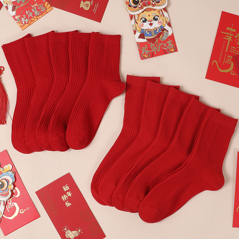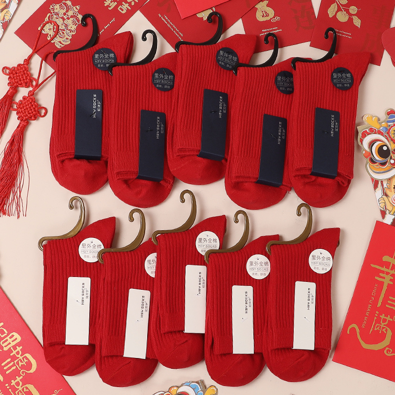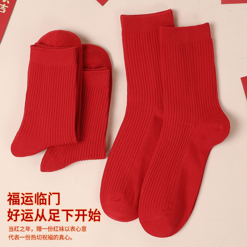 本命年情侣大红袜子女秋冬棉质发财婚礼袜纯色双针蛇年男士 中筒袜
