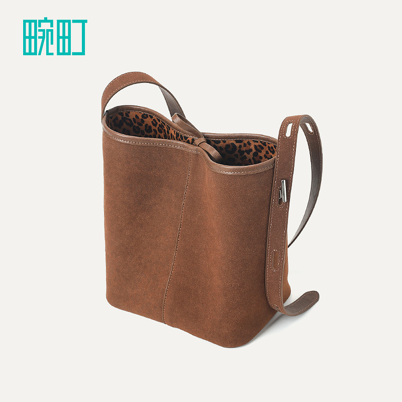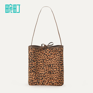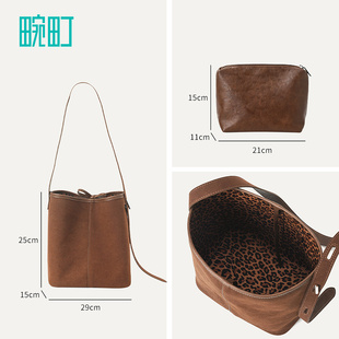 畹町双面用豹纹包女雅丹风斜挎通勤子母包大容量磨砂绒单肩水桶包