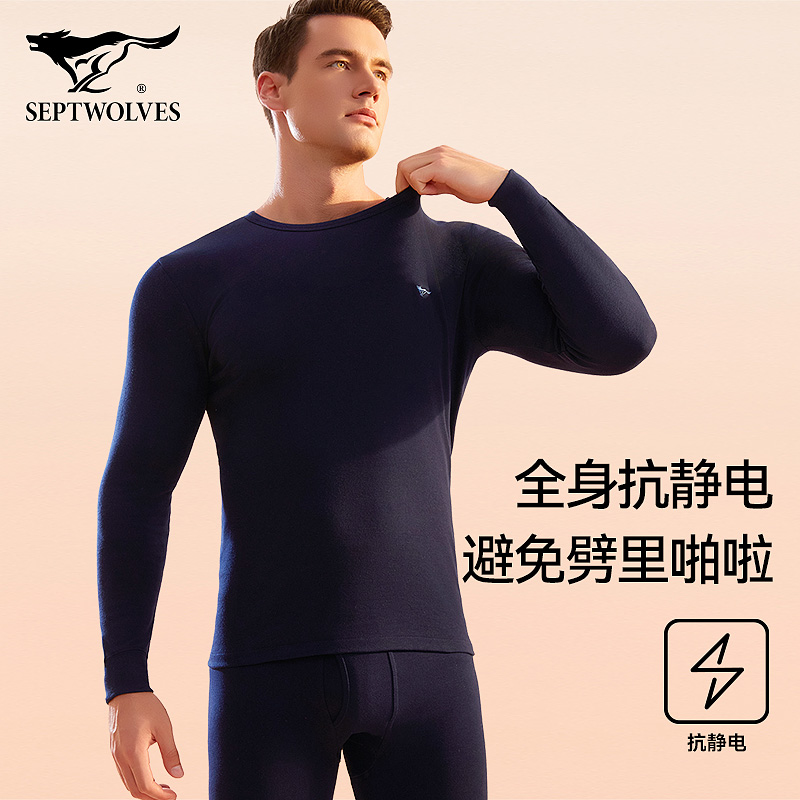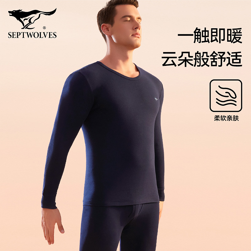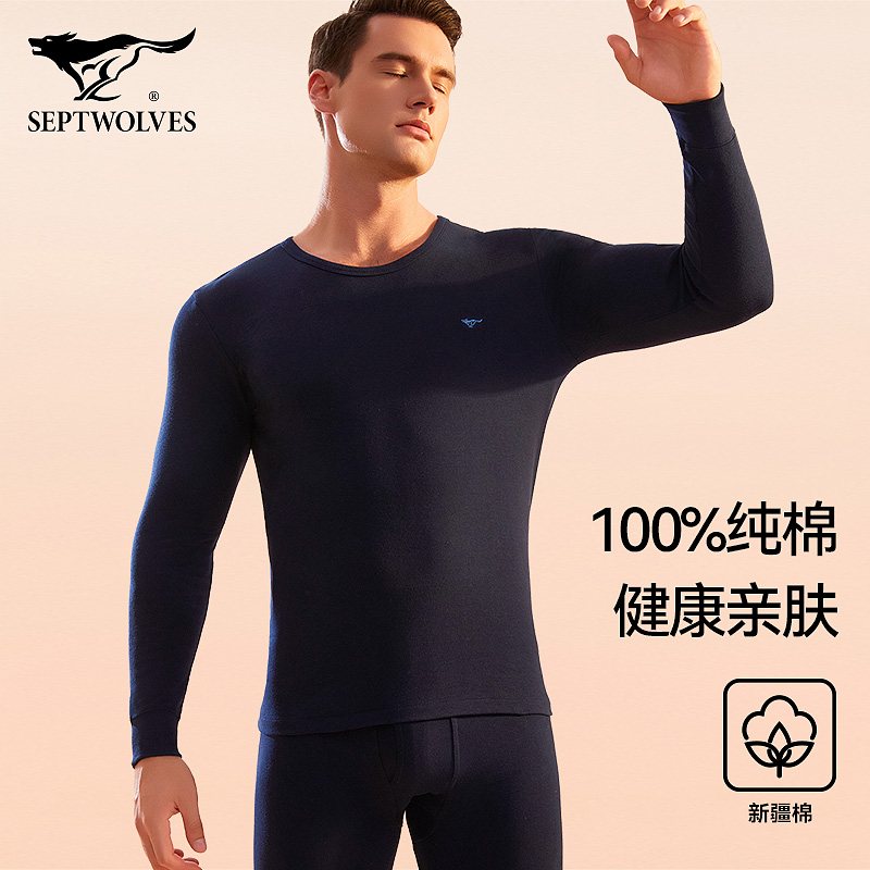 棉毛衫 七匹狼秋衣秋裤 100%全棉秋冬季 套装 纯棉打底保暖内衣男 男士