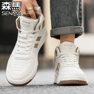 靴子 真皮防水厚底增高工装 森马马丁靴男秋季 高帮百搭休闲白色板鞋