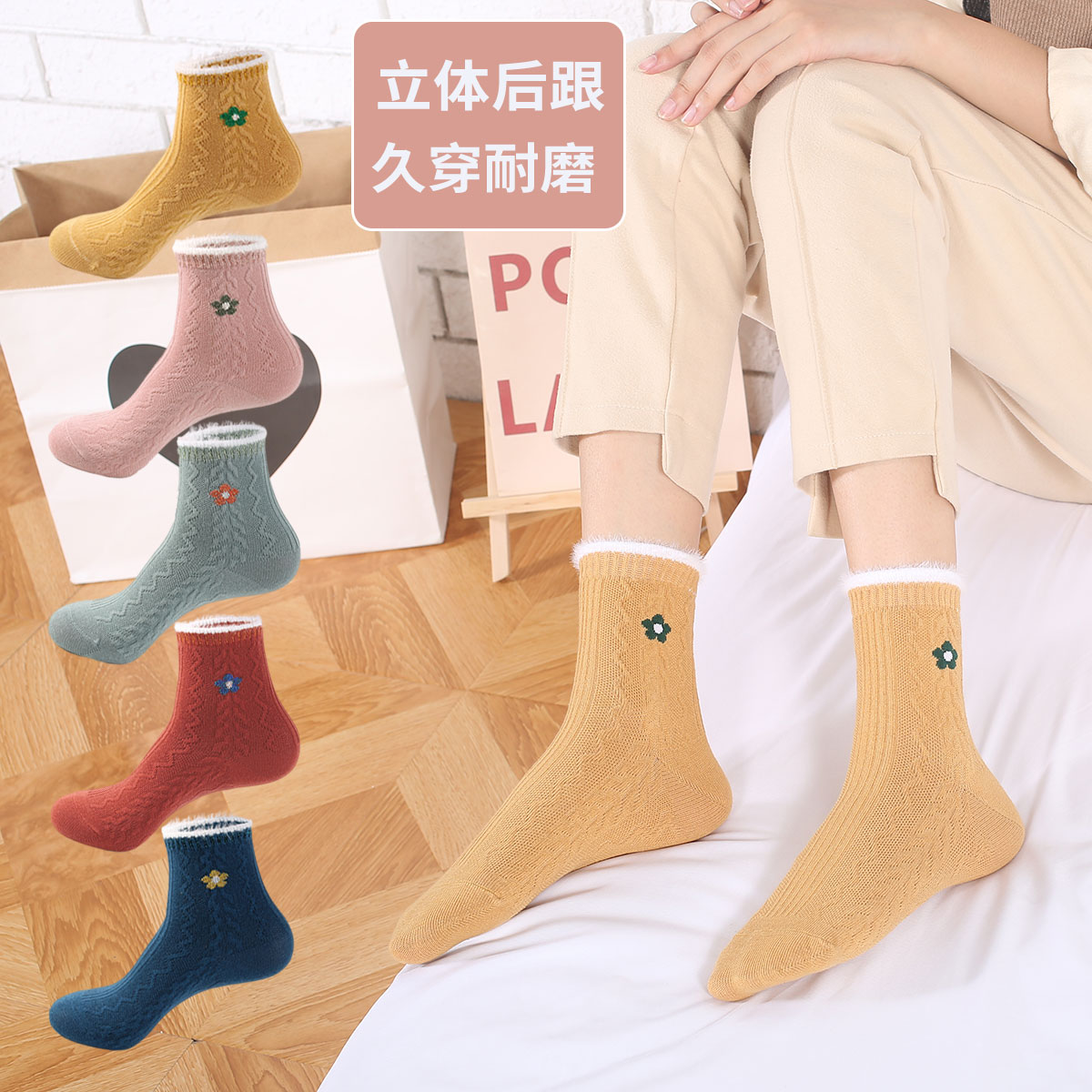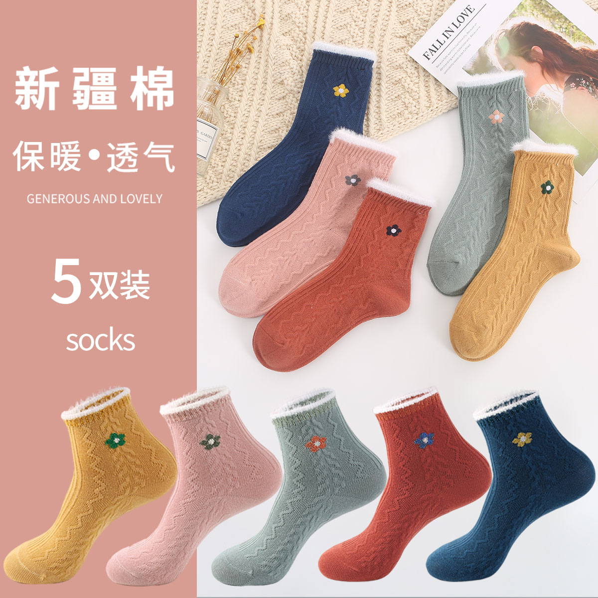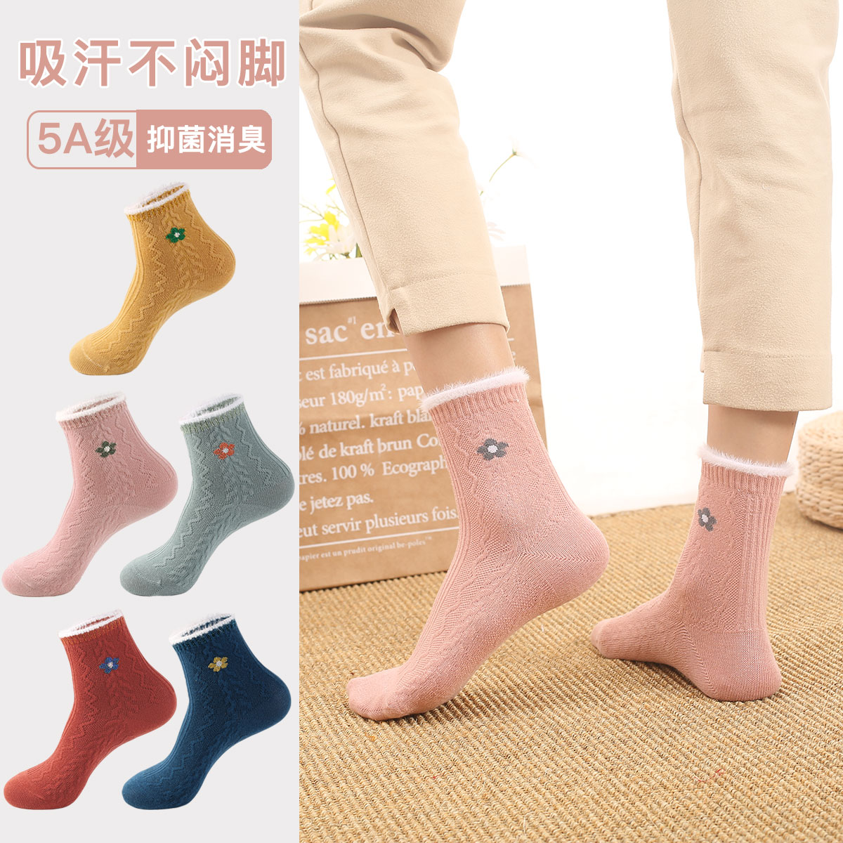 maxdavid女抗菌加厚中筒袜白色边条秋冬潮袜棉保暖袜女棉袜运动袜