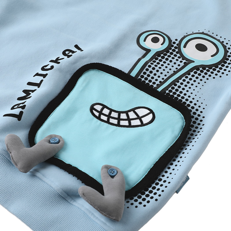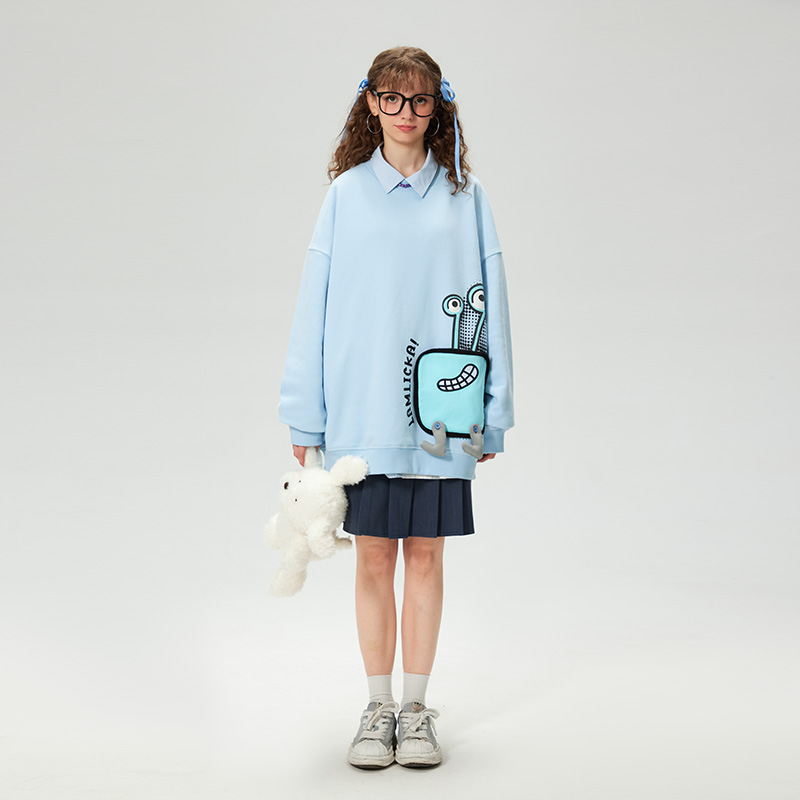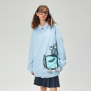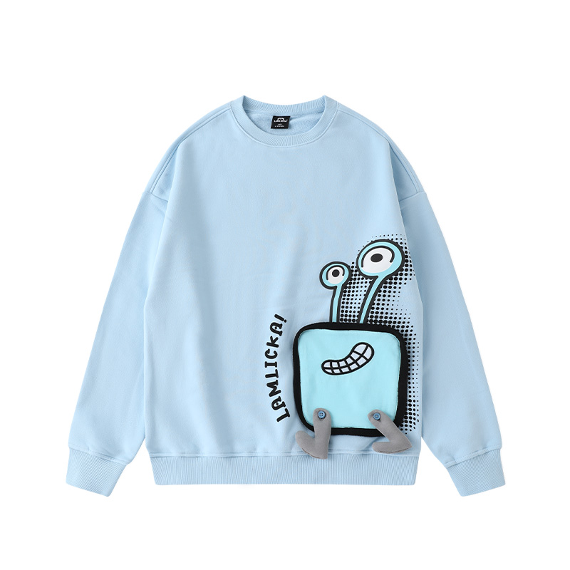 LAMLICKA卡通立体印花口袋圆领卫衣秋冬新款 潮设计感上衣宽松 时尚