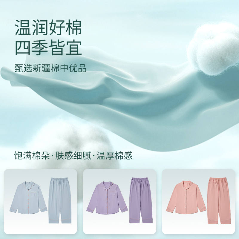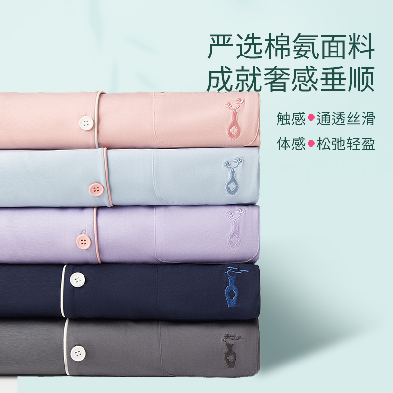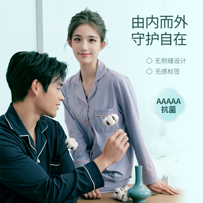 情侣休闲套装 洁丽雅纯棉家居服翻领纯色男女睡衣春夏季 2025新款
