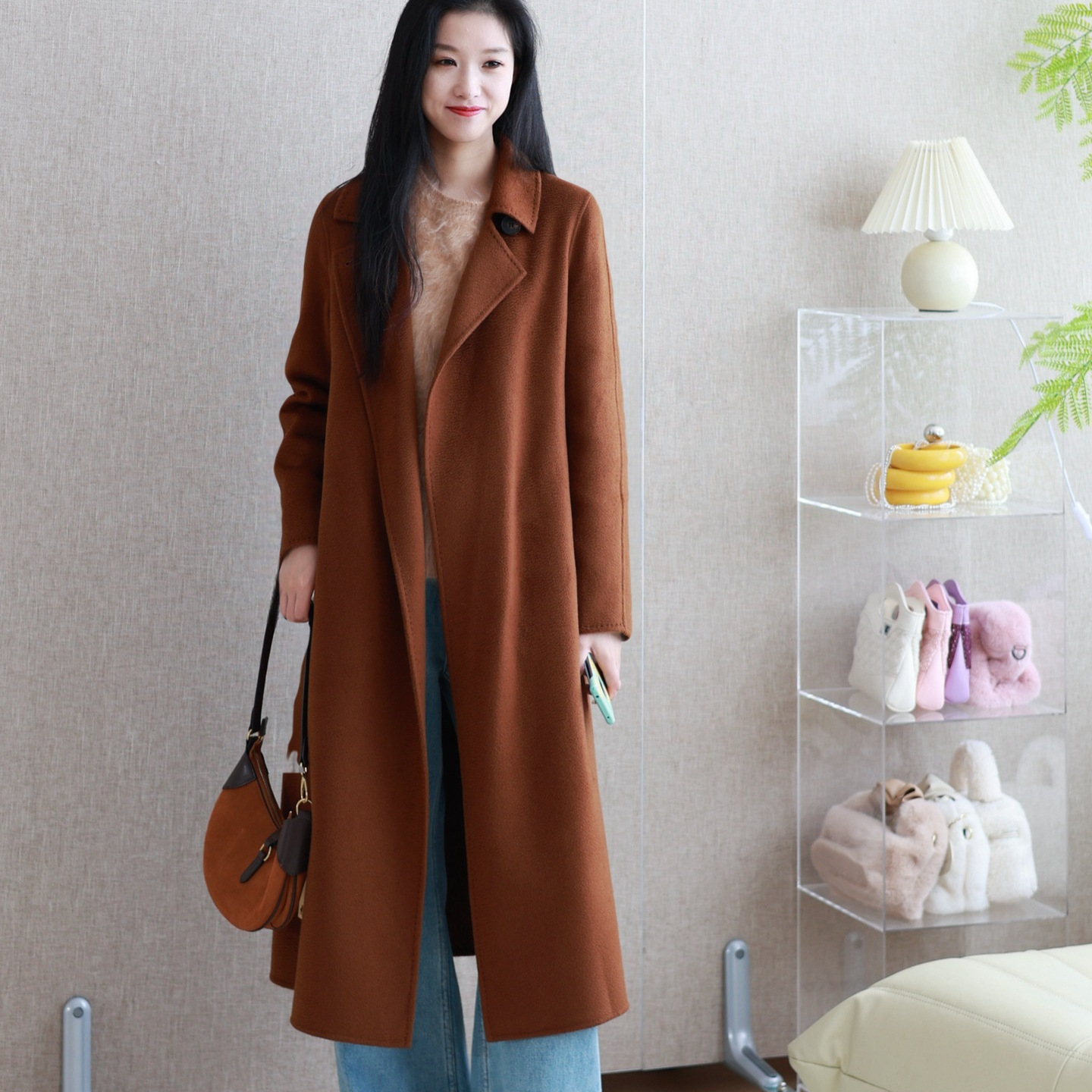 高个子双面呢加长款 高级感毛呢外套 羊绒大衣女2024秋冬过膝加长款